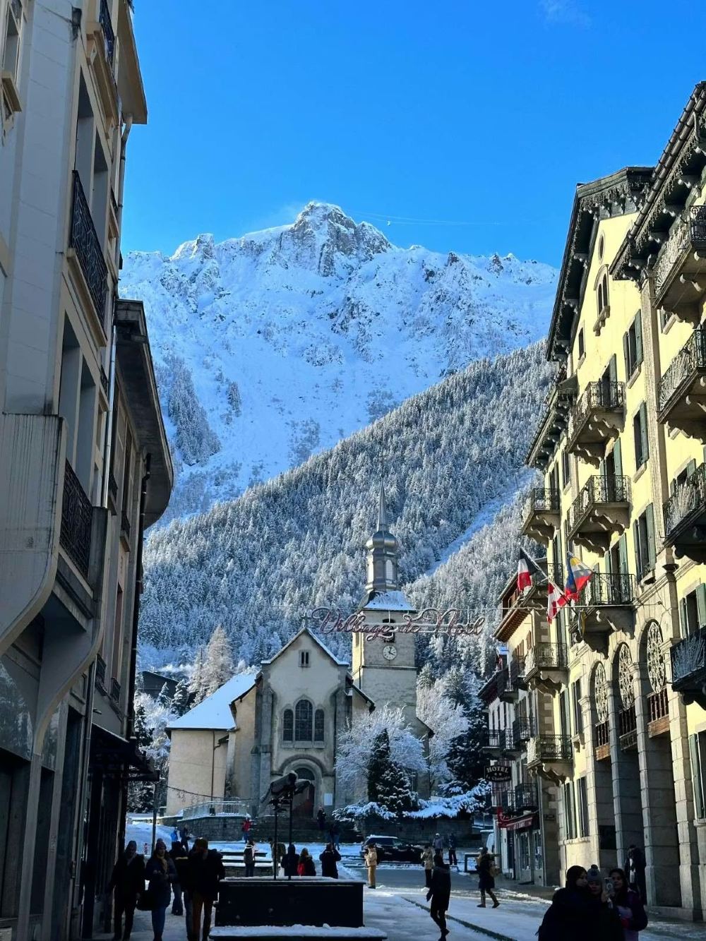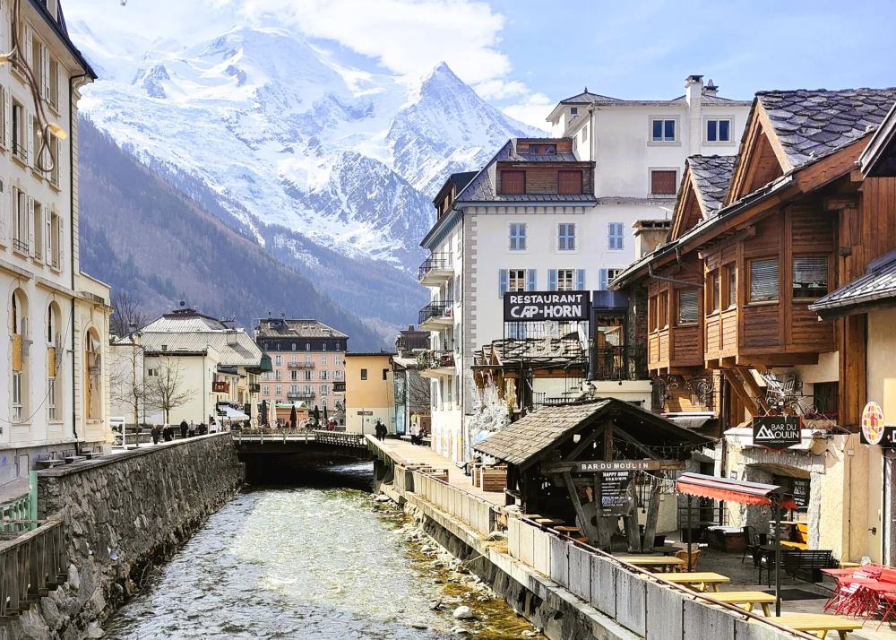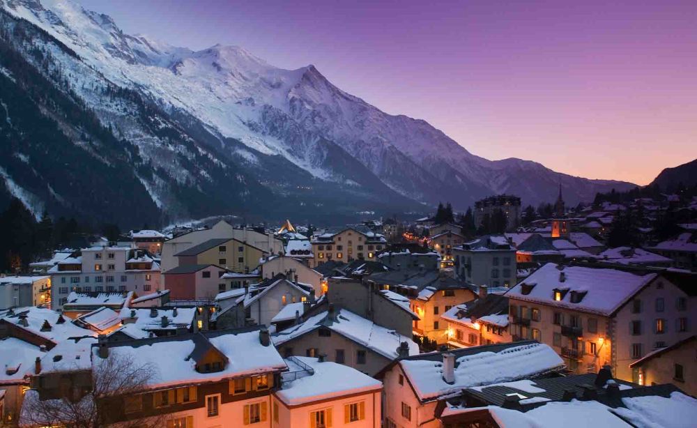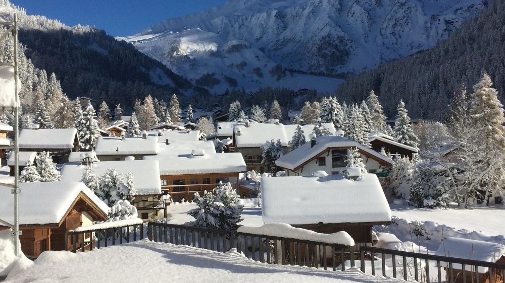 ▲ Een besneeuwd bergdorp aan de voet van de Mont Blanc