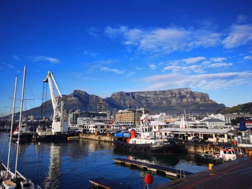 ▲ Victoria & Alfred Waterfront: Een recreatiegebied omgebouwd vanuit een historische haven. Hier vind je winkelcentra, restaurants, musea, met op de achtergrond de Tafelberg en aangemeerde jachten.