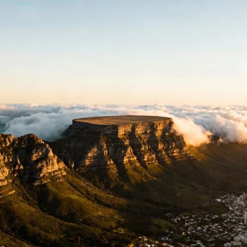 ▲ Tafelberg: Het iconische platte bergmassief van Kaapstad, ook wel bekend als "Gods eettafel". De top is een uitgestrekt natuurreservaat met een adembenemend uitzicht over de stad, de baai en het in de verte gelegen Robbeneiland.