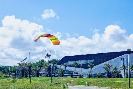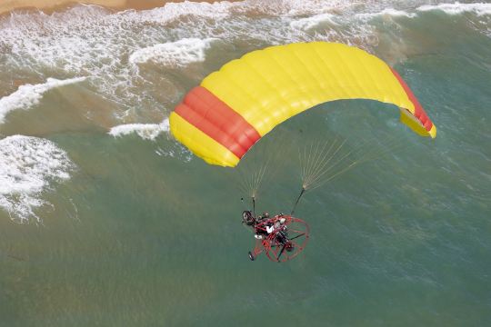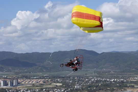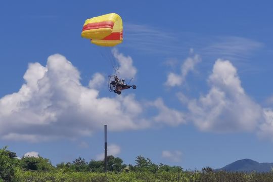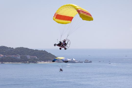 7. Bij het opstijgen van de paragliden, werk volledig mee met de instructeur, leun lichtjes naar voren, oefen kracht uit, controleer het zwaartepunt van uw lichaam en ren in de richting die de instructeur aangeeft totdat u uit de berg bent.