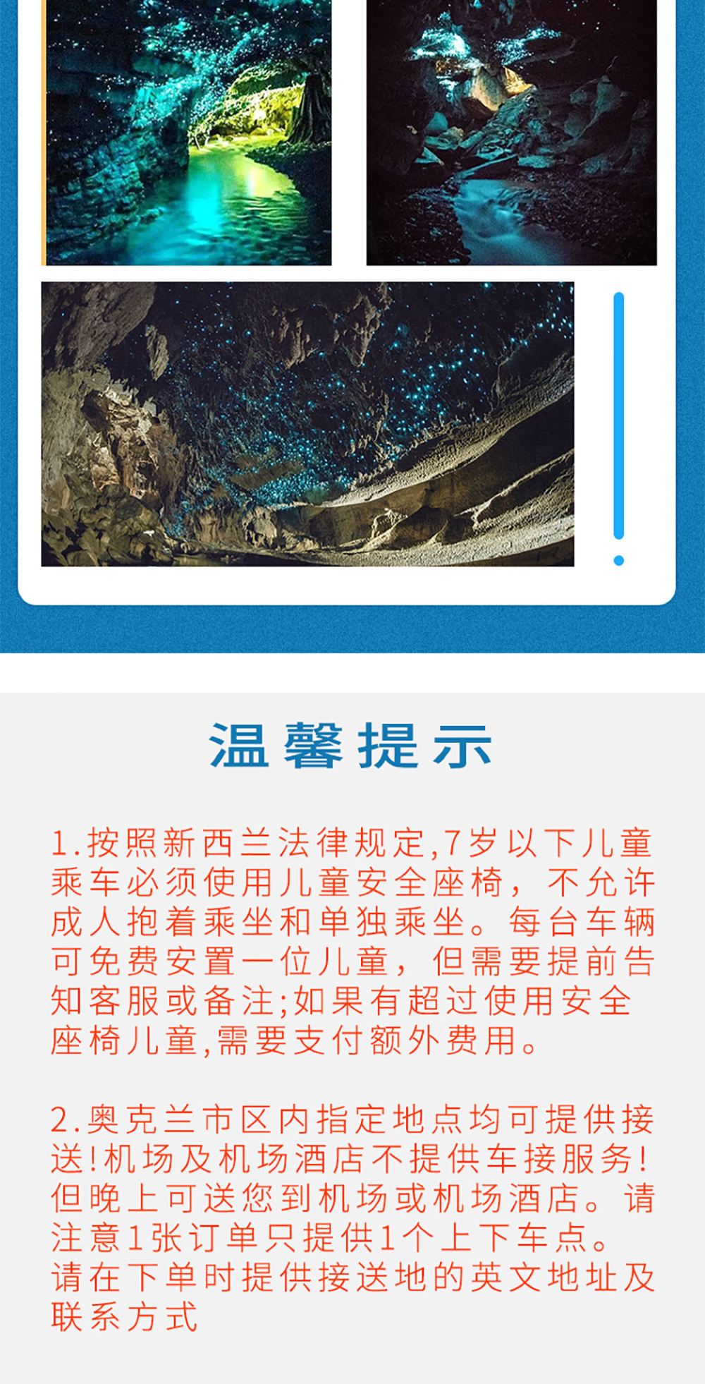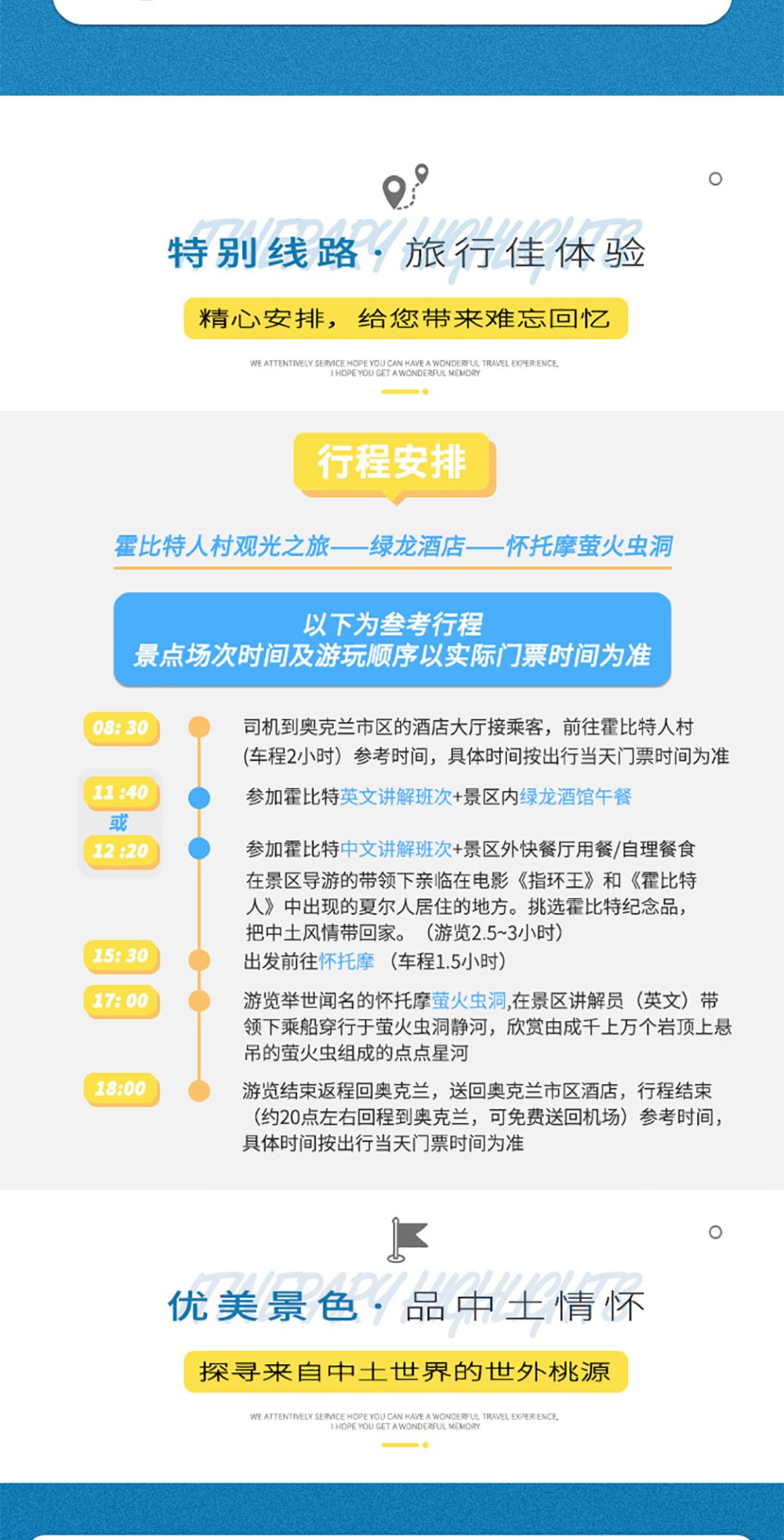 2. De vermelde tijden in de reis zijn allemaal referentietijden, de mogelijke vertrektijd ligt tussen 6.00 en 9.00 uur 's ochtends. Gelieve u te baseren op de tijd van uw toegangsbewijs voor attractie op de dag van uw reis. Eenmaal de vertrektijd voor een gedeelde rit is vastgelegd, kan deze niet meer worden aangepast. Het wordt afgeraden om een vlucht op dezelfde avond te boeken, aangezien de reistijd lang is en de wegcondities onvoorspelbaar zijn. (Als u op dezelfde dag met het vliegtuig of een boottocht Auckland verlaat, probeer dit dan na 11.00 uur te plannen.)