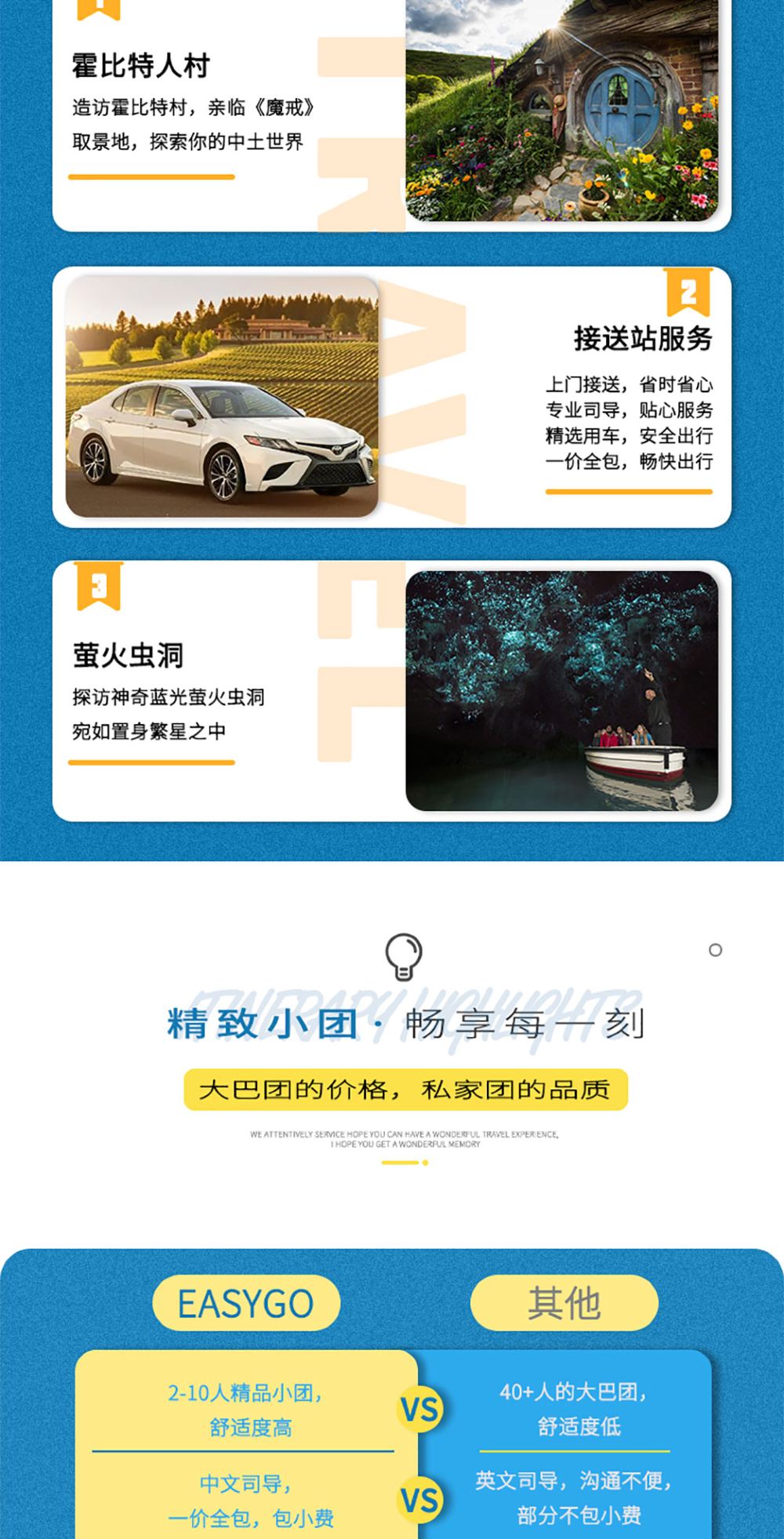 6. Tijdens de tour naar Hobbiton en de Glowworm Caves worden bezoekers begeleid door een professionele gids van het park. Onze chauffeur/gids gaat niet mee de attractie in.