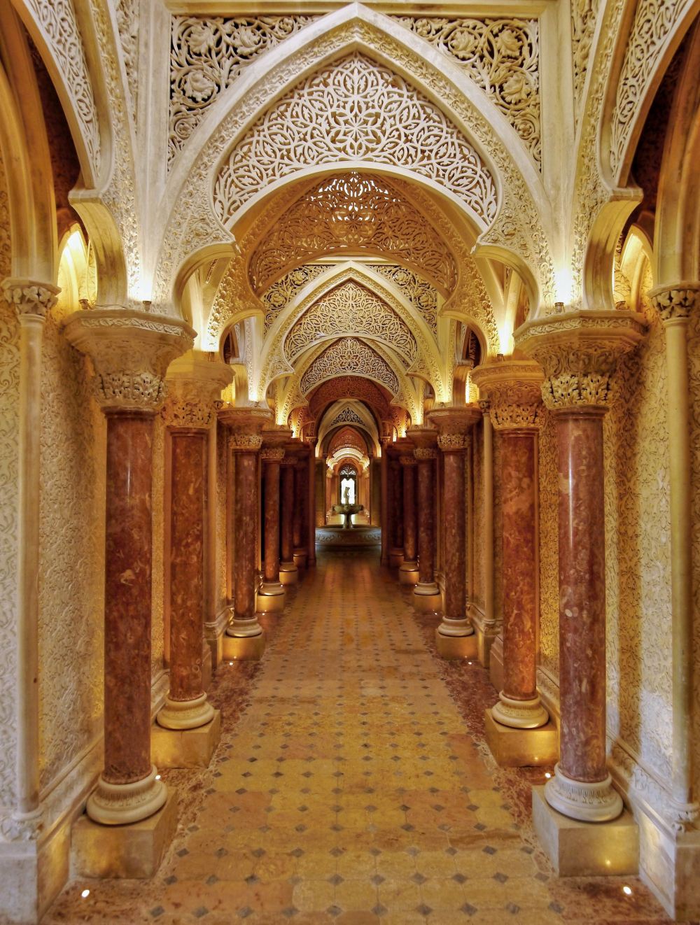 Het Paleis van Monserrate, gebouwd in 1858, heeft een exotische buitenkant met islamitische, romantische en neogotische architectonische elementen. Als u door het paleis wandelt, wordt u ondergedompeld in een sprookjesachtige sfeer. Geniet van de natuurlijke schoonheid van het terrein, met tuinen, planten en bloemen van over de hele wereld, meren, fonteinen, bronnen en grotten.