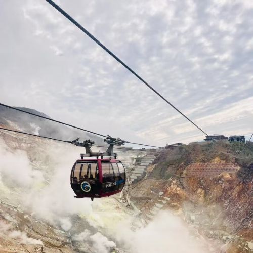 ▲ 12:40 ▼Hakone kabelbaan - Togendai Station - Owakudani route (ongeveer 30 minuten, kabelbaankosten inbegrepen) De Hakone kabelbaan biedt prachtige uitzichten, vooral in de buurt van Owakudani en tussen Owakudani en Ubako, waar je een mooi uitzicht op de Fuji-berg hebt. Het eerste deel tussen Ubako en Togendai biedt vooral een uitzicht op het kratermeer Ashinoko. De Hakone kabelbaan is buiten gebruik van 31 januari tot 20 februari (traject tussen Owakudani Station en Togendai Station) Van 31 januari tot 20 februari wordt de kabelbaan vervangen door het traject tussen Sounzan Station en Owakudani Station.