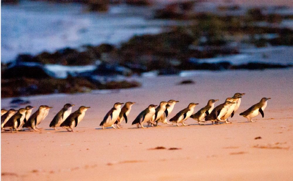 • In de late namiddag kunt u het hartverwarmende schouwspel aanschouwen van kleine pinguïns die uit de rollende golven tevoorschijn komen en terug waggelen naar hun holen in de duinen.