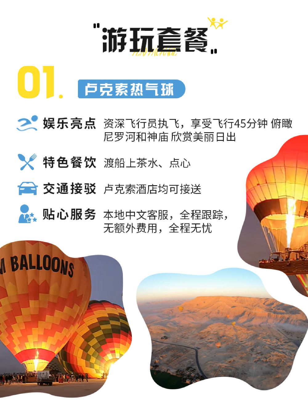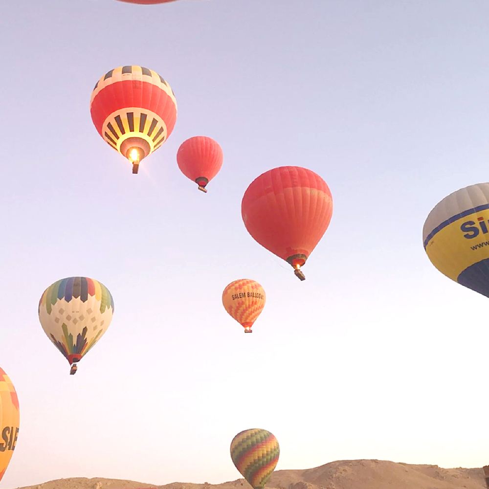 ▲ Een zee van ballonnen, een lucht vol kleuren Het hoogtepunt van de opstijging is aangebroken, tientallen luchtballonnen zweven gelijktijdig tussen hemel en aarde, wat een droomachtig tafereel vormt van deze luchtballet. Uw ballon beweegt zich tussen deze stille vloot door, omringd door eveneens kleurrijke ballonnen die dromen dragen. Het zonlicht breekt door de nevel en legt een gouden filter over het hele spektakel, een grandioos en betoverend schouwspel. Druk op de ontspanknop en leg niet alleen het landschap vast, maar ook een eeuwige ontroering en verbazing. Dit moment van kleurrijke pracht in de lucht is genoeg om uw hele reis door Egypte te definiëren en wordt een van de meest kostbare herinneringen van uw leven.