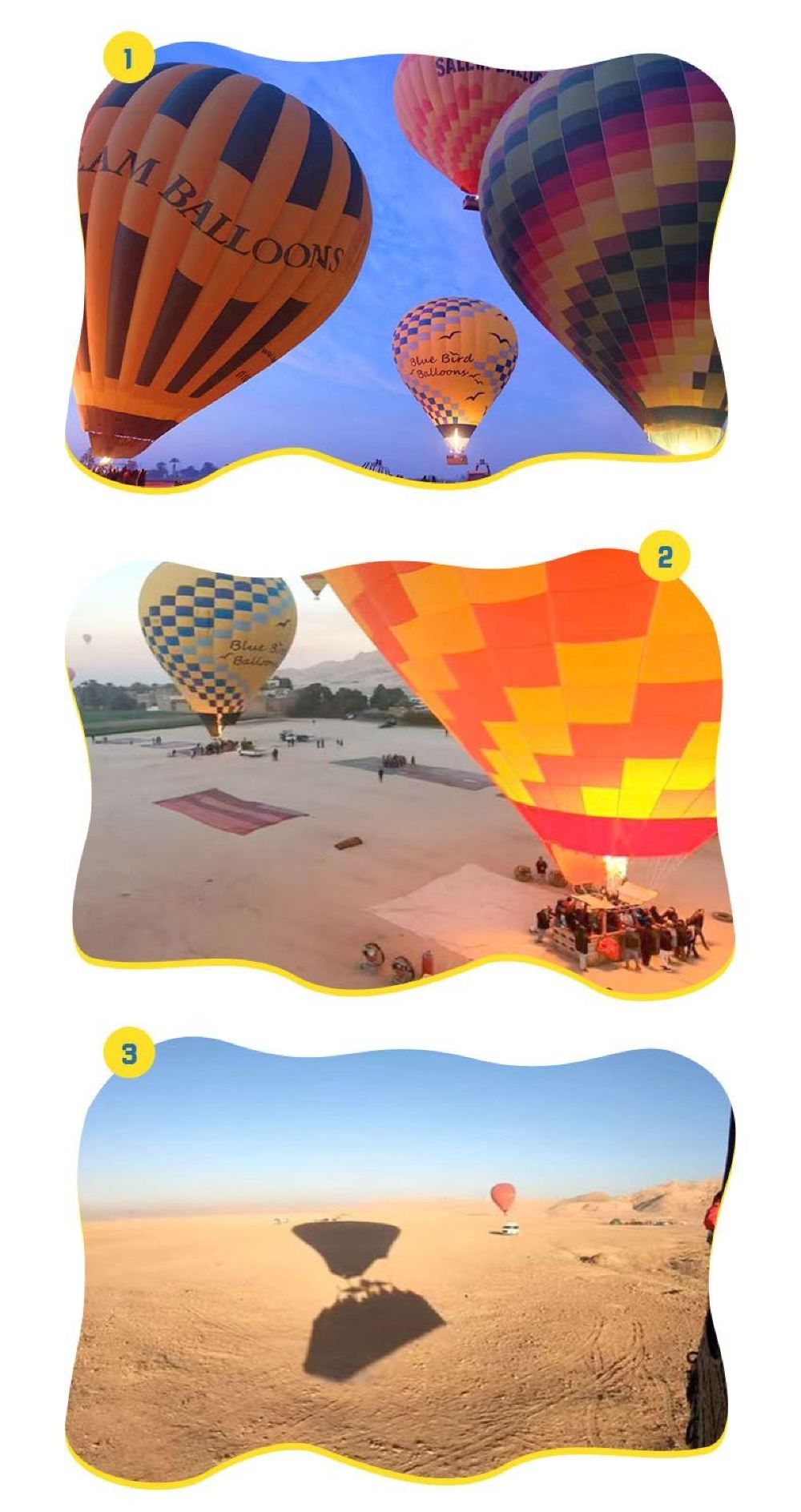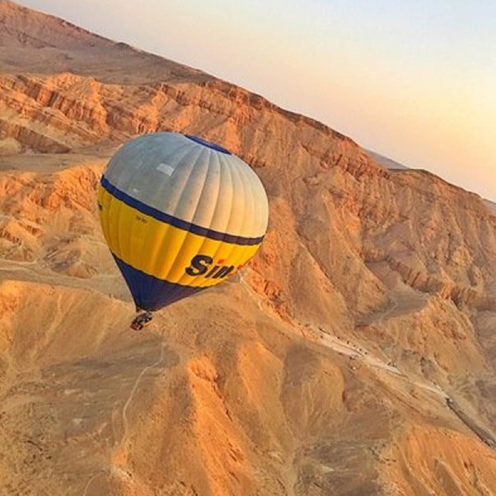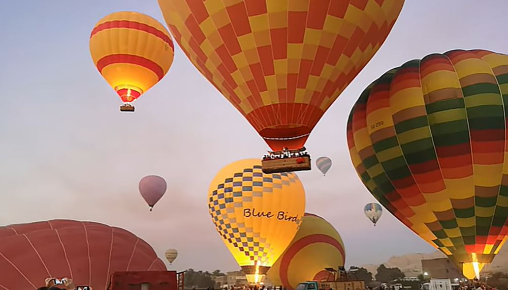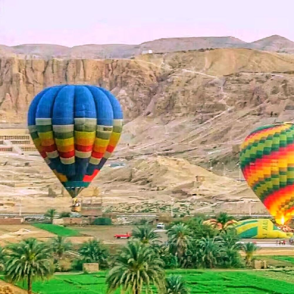 ▲ De ballon gloeit rood van het innerlijke vuur, wat een sterk contrast vormt met de gouden gloed van de opkomende zonsopgang aan de verre horizon. Dit moment is doordrenkt van ceremonialiteit, terwijl de lucht gevuld is met opgewonden gefluister van anticipatie. U staat op het punt de aarde te verlaten en op een epische manier deze luchtreis te beginnen, waarbij u vanaf de lucht de eerste zonsopgang van Egypte begroet en uitkijkt over de heilige vlaktes die door de farao's als het land van eeuwigheid werden beschouwd.