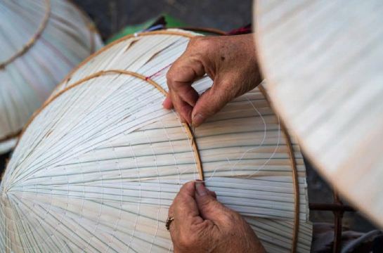 ▲ Stop bij een huis waar kegelvormige hoeden worden gemaakt en zie hoe lokale ambachtslieden dit traditionele symbool van Vietnamese nationaliteit creëren.